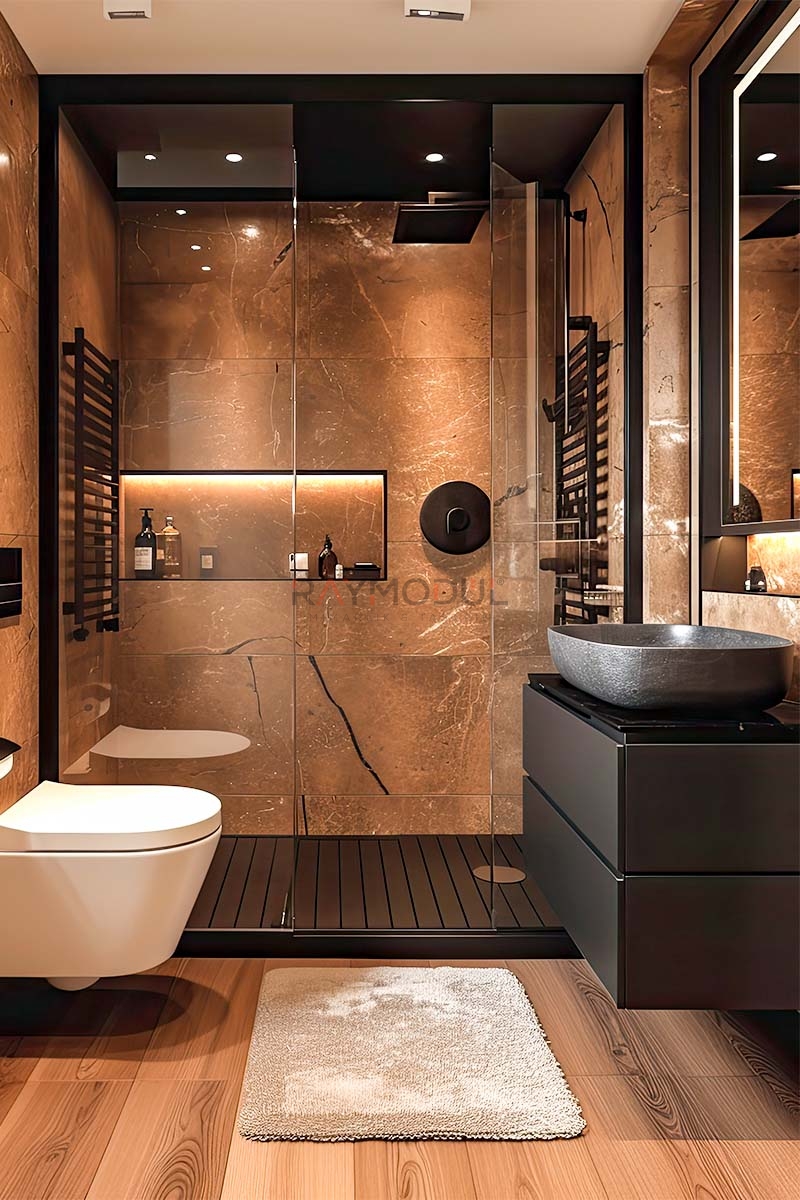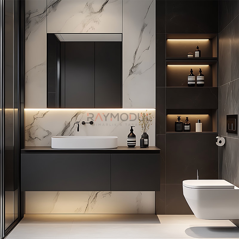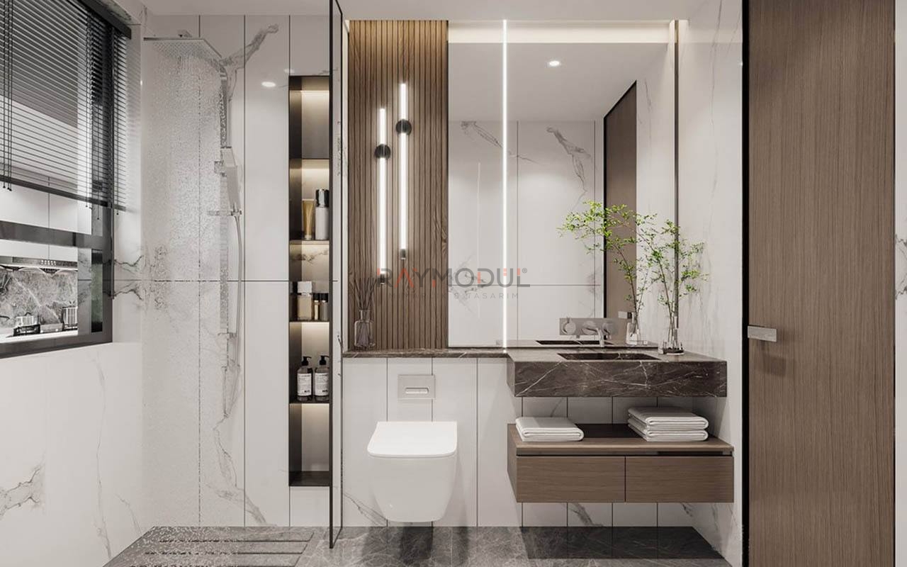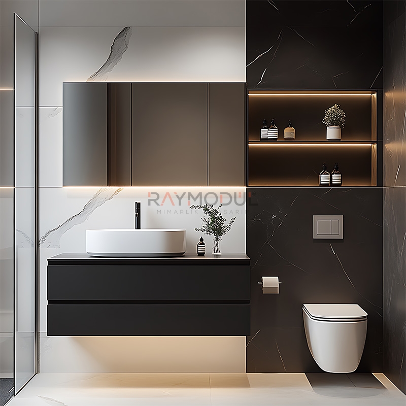- Nem ve Suya Dayanıklı Malzemeler: Banyonun zorlu koşullarına uygun, uzun ömürlü ve dayanıklı yapıya sahiptir.