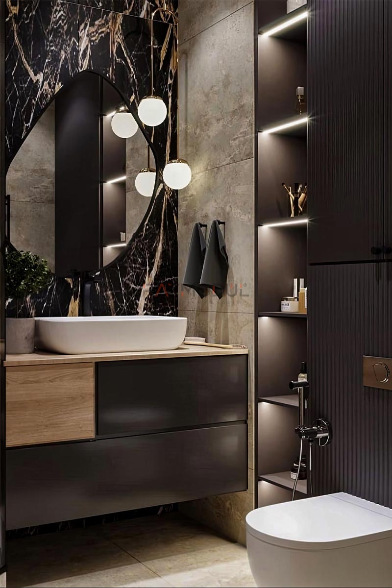 - Geniş Depolama Alanı: Havlular, kozmetik ürünler ve banyo gereçlerini düzenli bir şekilde saklamak için ideal çözümler sunar.