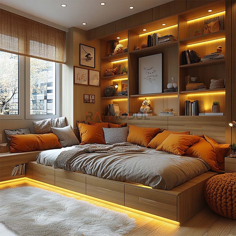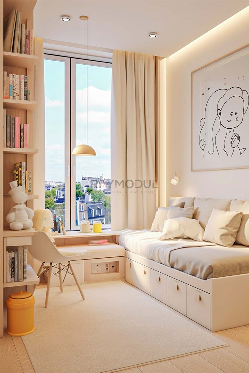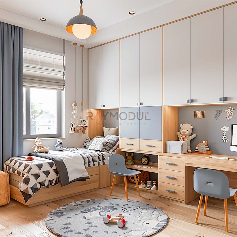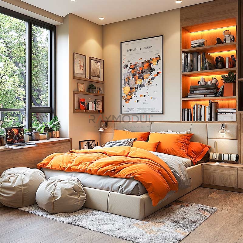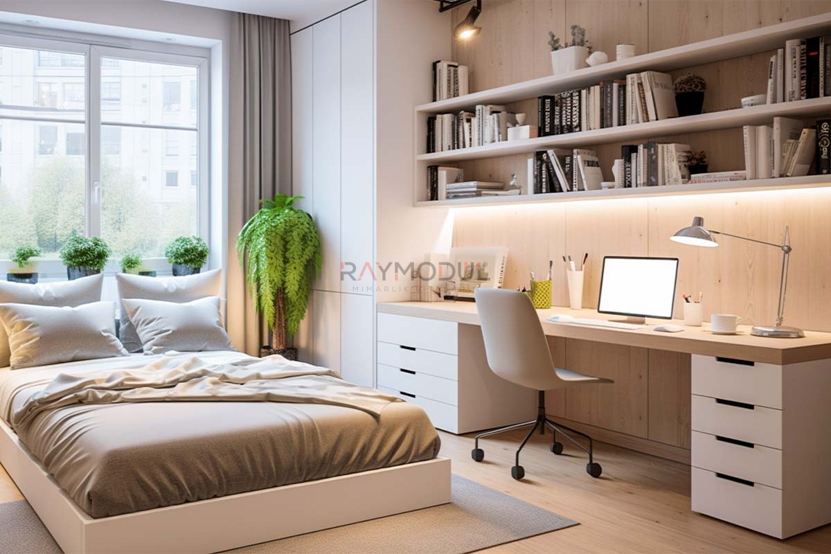 • İşlevsel Çözümler: Çalışma masaları, yataklar ve depolama üniteleriyle hem çalışma hem de dinlenme alanlarını verimli hale getirir.