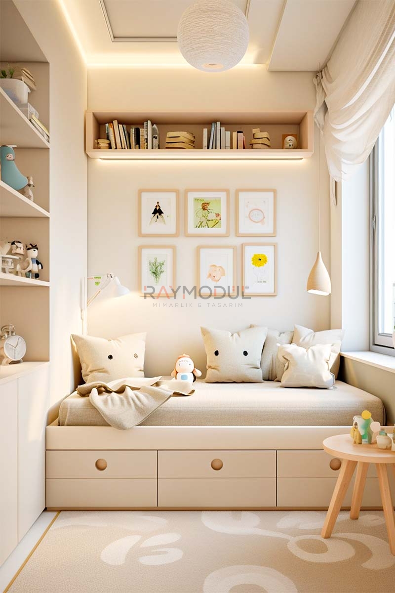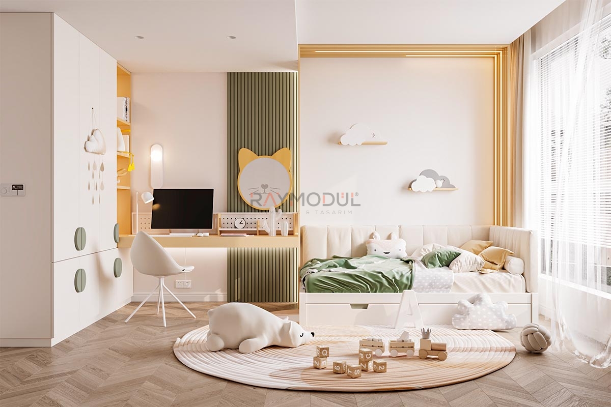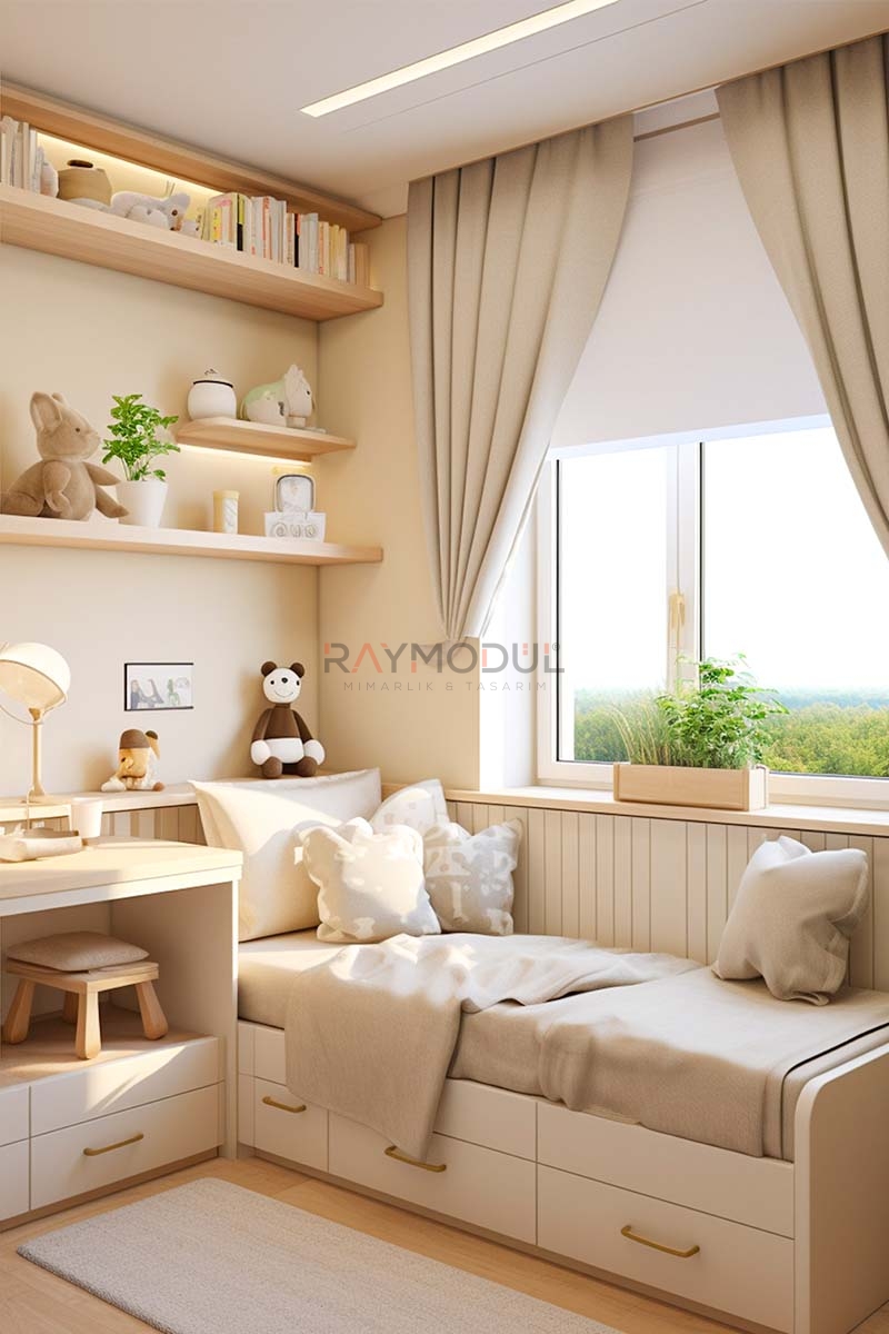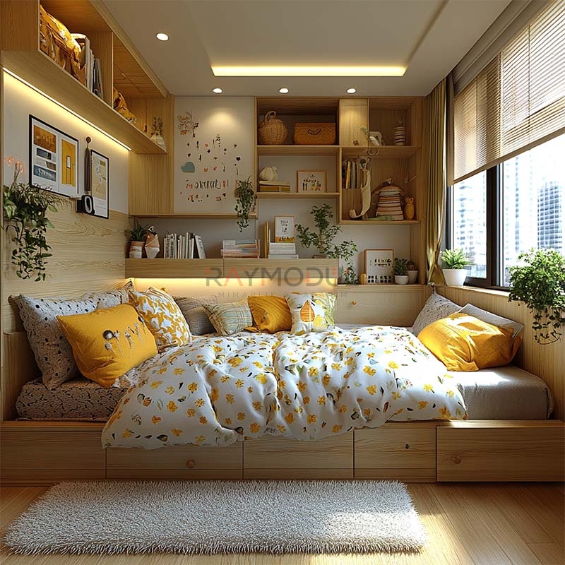 • İşlevsel Çözümler: Çalışma masaları, yataklar ve depolama üniteleriyle hem çalışma hem de dinlenme alanlarını verimli hale getirir.