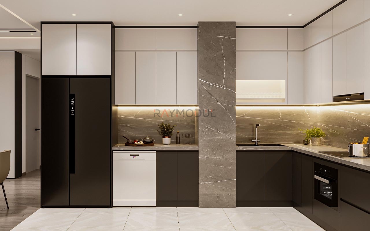 • Suya ve Neme Dayanıklı Malzemeler: Mutfağın zorlu koşullarına uygun, uzun ömürlü ve dayanıklı yapıya sahiptir.